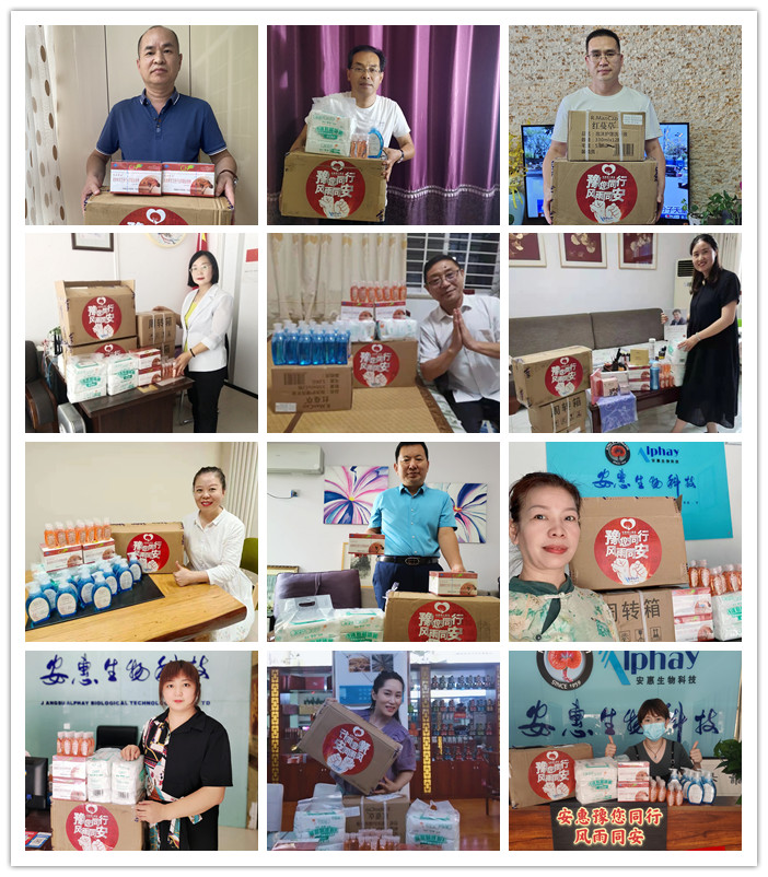 安惠公司以強(qiáng)烈的責(zé)任感和擔(dān)當(dāng)精神,開展捐贈慰問活動。2021年8月,河南地區(qū)綠芝及以上領(lǐng)導(dǎo)人、河南地區(qū)專賣店店長和服務(wù)中心負(fù)責(zé)人、河南地區(qū)2021財年樂享達(dá)成人員、河南地區(qū)部分市場骨干人員等80人陸續(xù)收到了安惠愛心基金捐贈的慰問物資:通惠牌靈芝孢子蟲草菌絲體粉、紅蔓草泡沫護(hù)理洗手液、惠寶寶嬰兒手口濕巾、竹紅菌素抑菌免洗手凝露等。