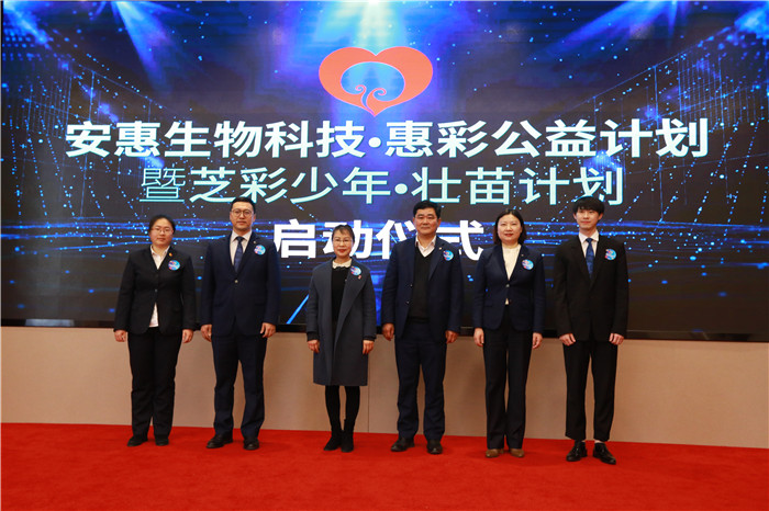 安惠公司副董事長陸漢萍、副總經(jīng)理曹昌貴、總經(jīng)理助理鄭林國、教育總監(jiān)鄭曉耘、團(tuán)委書記葛玉林、安惠青春飛揚(yáng)志愿“彩”計劃小分隊陳駿驊共同啟動“安惠生物科技·惠彩公益計劃”暨“芝彩少年·壯苗計劃”。