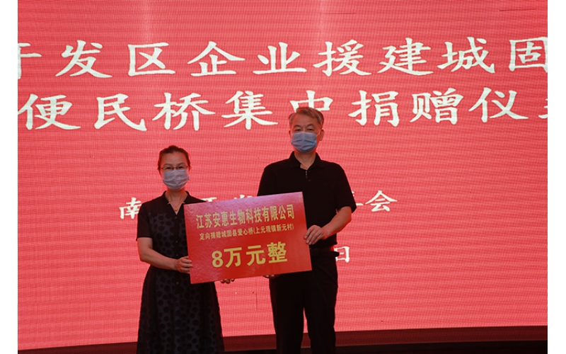2021年9月3日,在中華慈善日來臨之際,南通開發(fā)區(qū)企業(yè)援建城固縣愛心便民橋集中捐贈儀式在南通開發(fā)區(qū)星湖101舉行,安惠公司副董事長陸漢萍出席捐贈儀式。